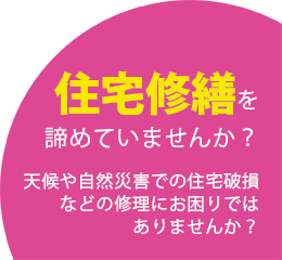 ホームページをリニューアルしました [2015年06月04日更新] 住宅修理に関し「保険金が使える」「自己負担金0円」と言って強引に勧誘し、ずさんな工事で法外な請求をする業者が増えています。 当社では、無理やりな営業や、違法行為は行いません。安心してご相談ください。